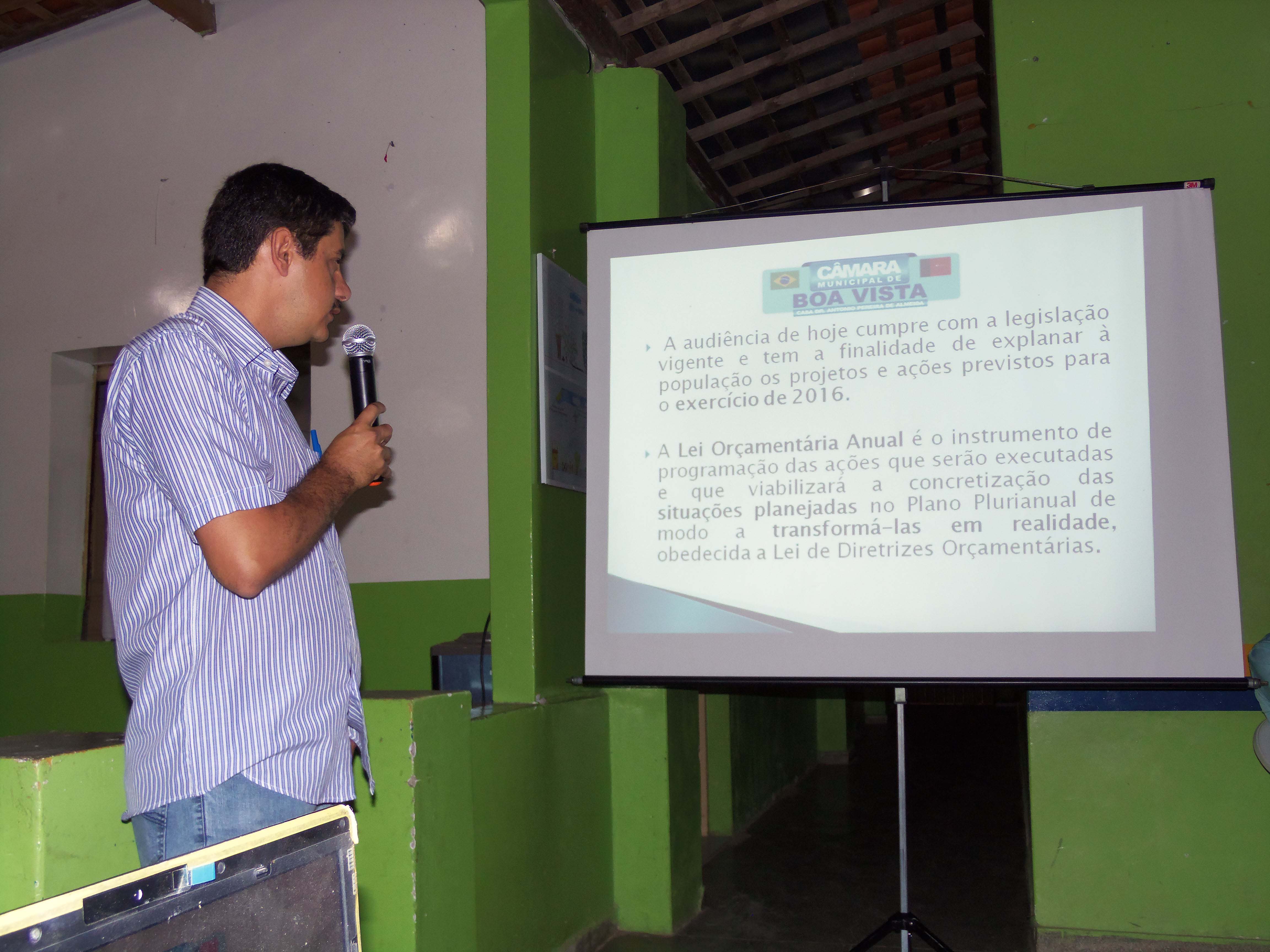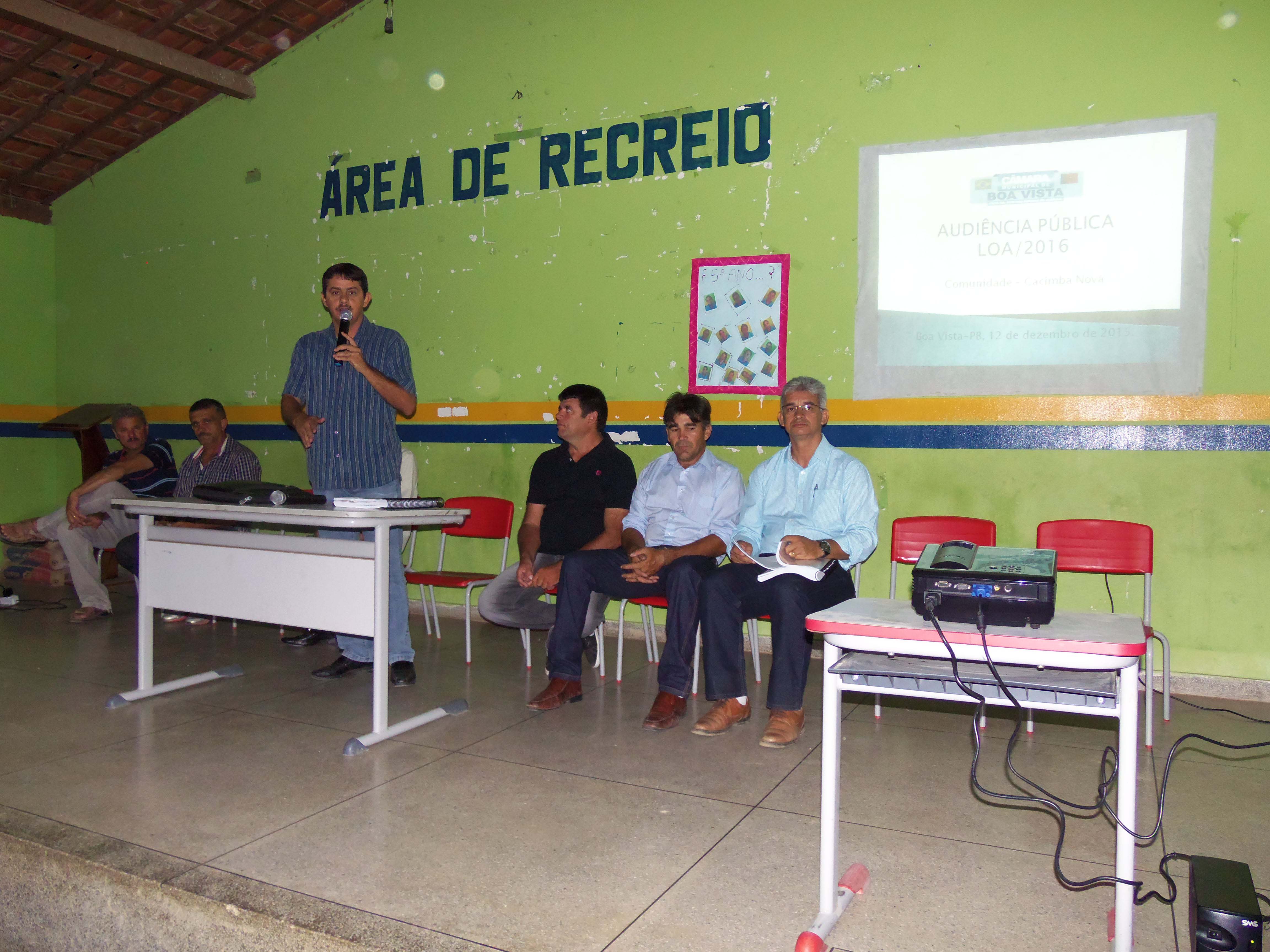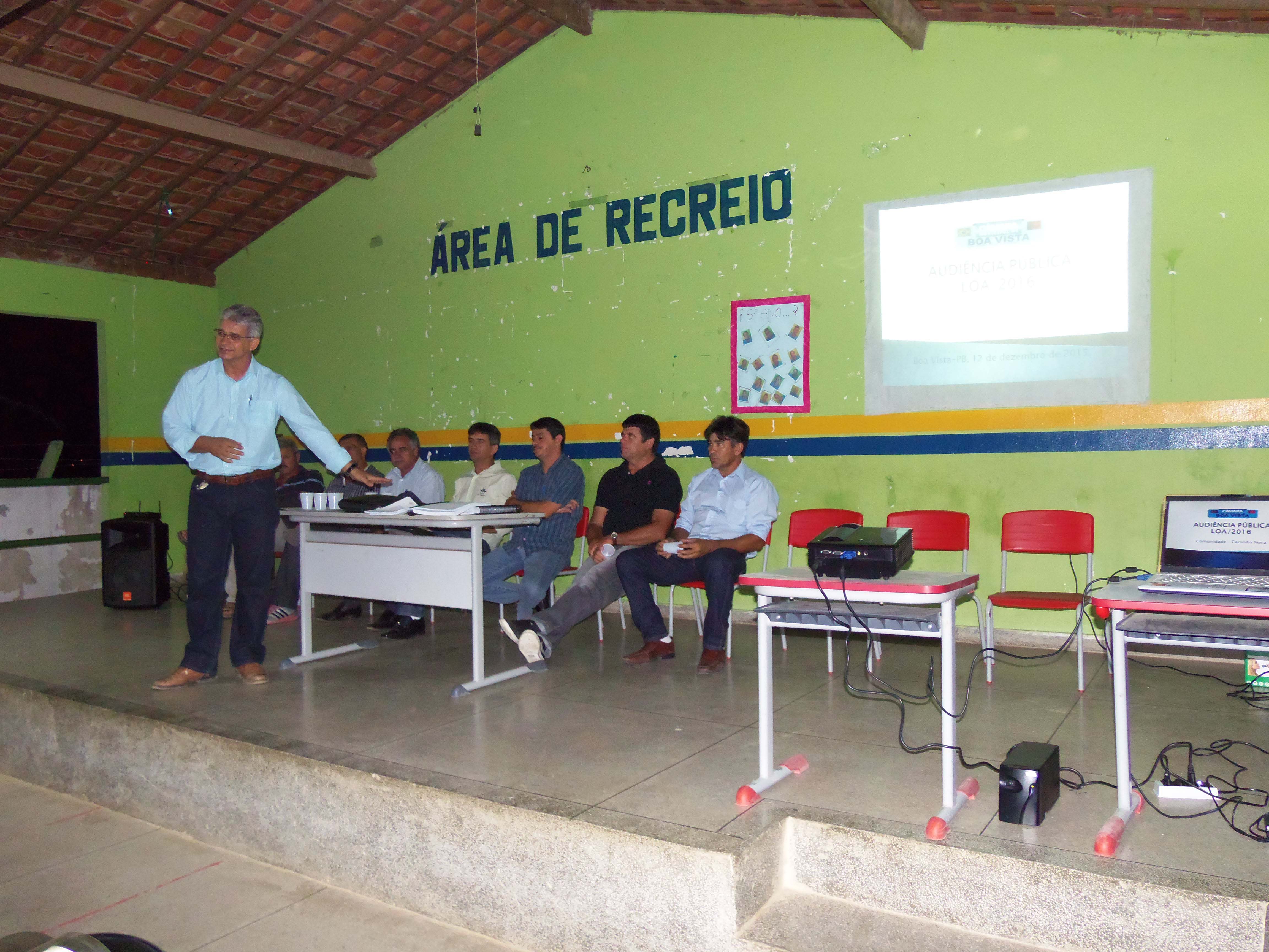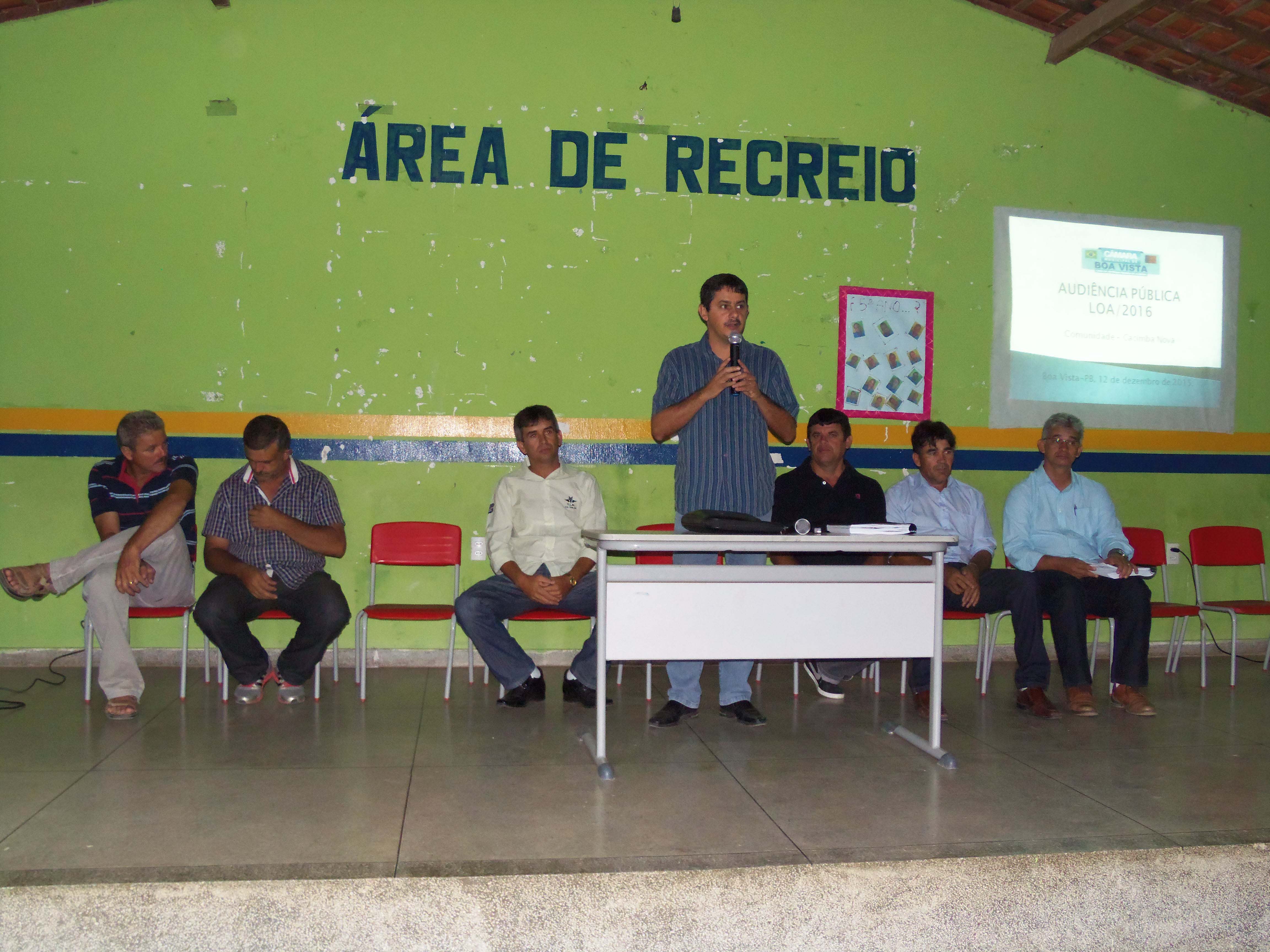 Com o intuito de aproximar o Poder Legislativo da população e conhecer, principalmente, as suas demandas e suas necessidades, a Câmara Municipal de Boa Vista realizou Audiências Públicas para discutir a Lei Orçamentária para 2016 em algumas comunidades do nosso município: Poço da Pedra, Caluête e Cacimba Nova, como também, na sede do Município.