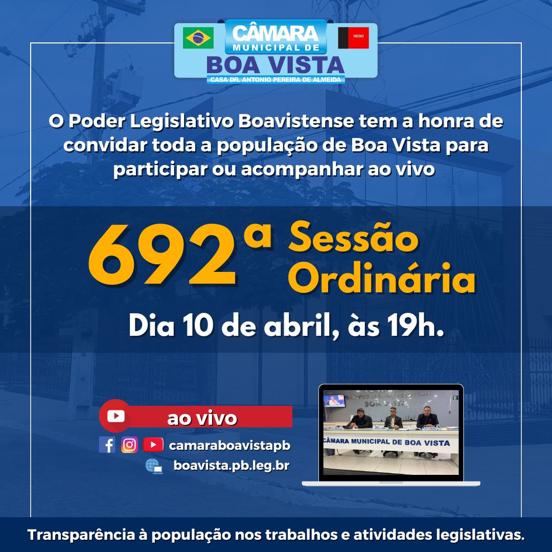 Início/Agenda/Convite Sessão Ordinária 10/04/2026 Agenda Convite Sessão Ordinária 10/04/2026 redacao9 de abril de 2026 redacao9 de abril de 2026 Facebook Twitter WhatsApp Compartilhar via e-mail Imprimir