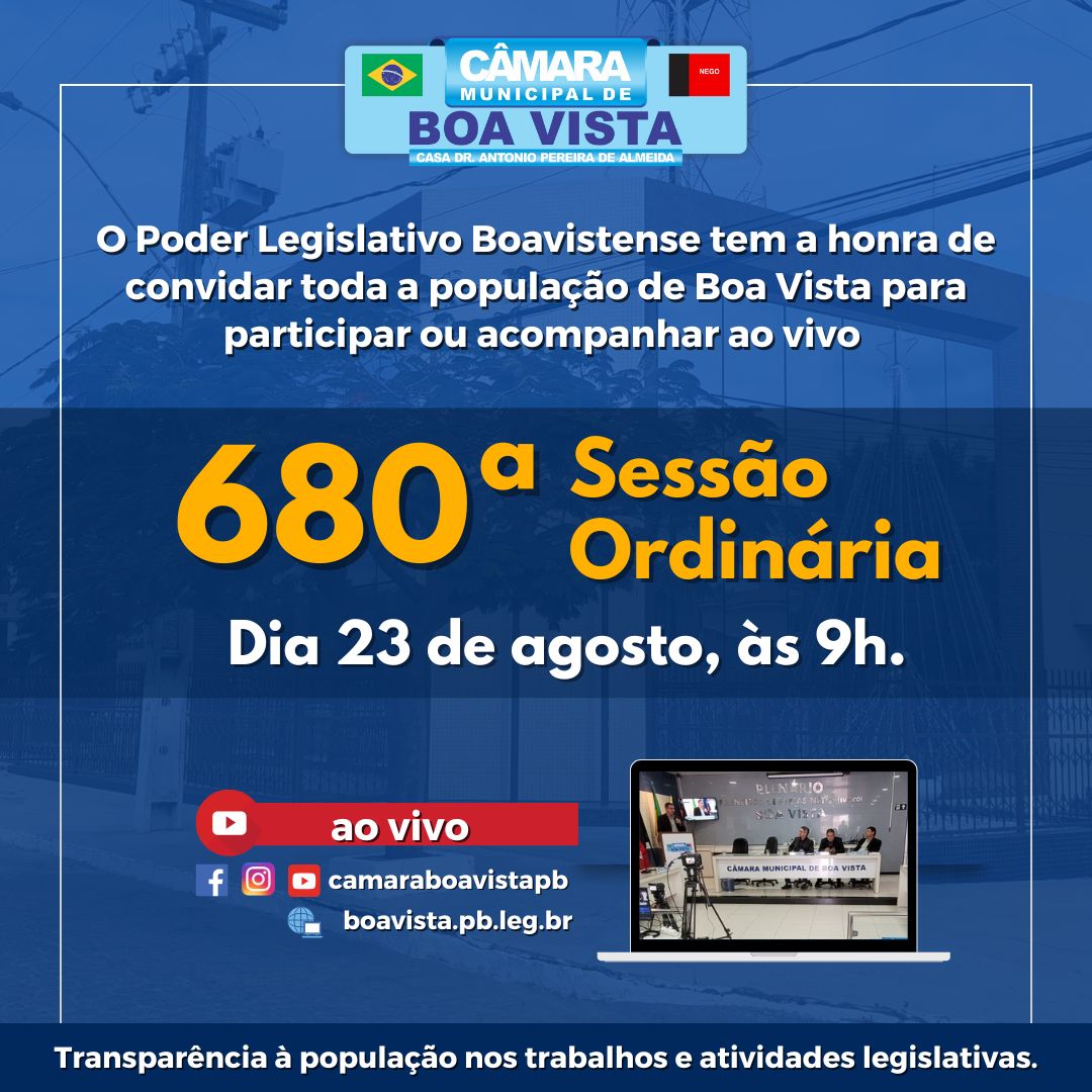 Início/Agenda/Convite Sessão Ordinária 23/08/2025 Agenda Convite Sessão Ordinária 23/08/2025 redacao19 de agosto de 2025 redacao19 de agosto de 2025 Facebook Twitter WhatsApp Compartilhar via e-mail Imprimir
